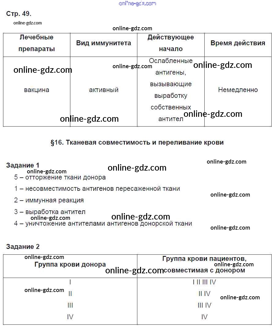 Готовые домашние задания по Биологии за 8 класс Рабочая тетрадь Маш, Драгомилов Алгоритм успеха 2019 - Часть 1. Страницы 49