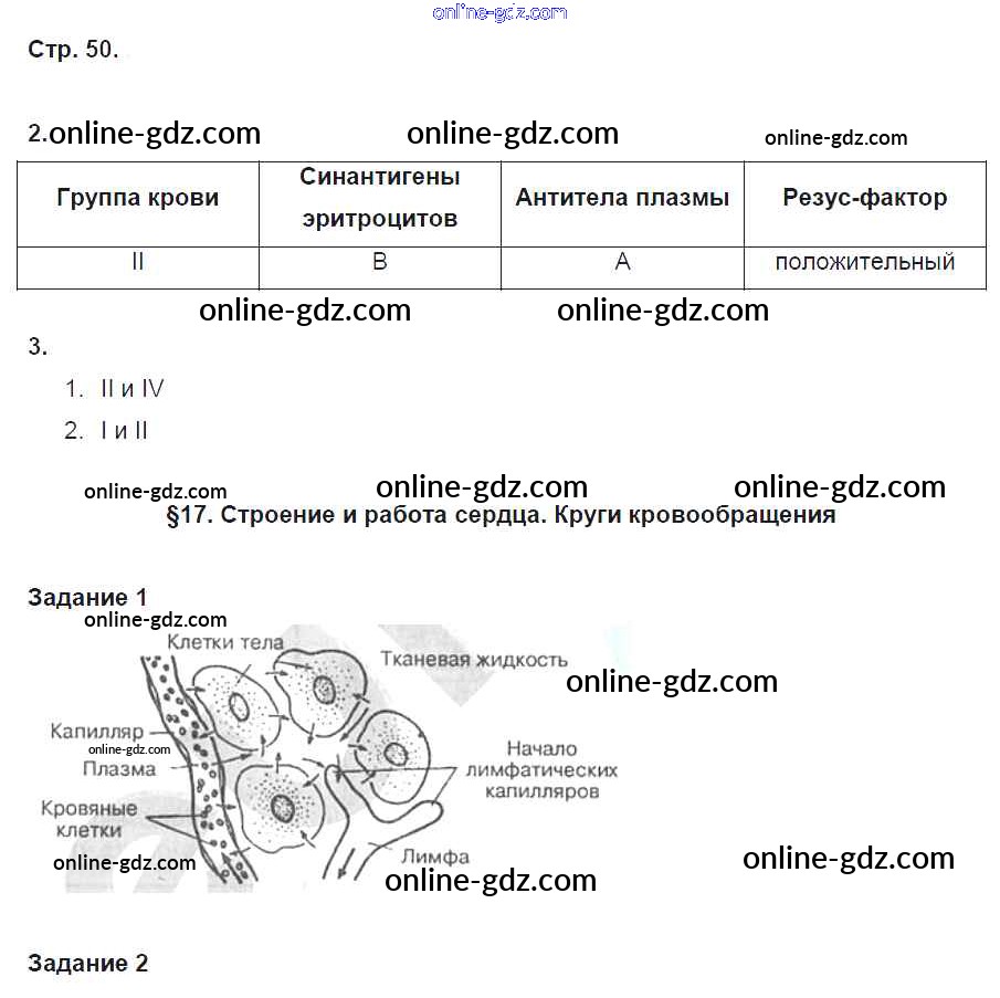 Готовые домашние задания по Биологии за 8 класс Рабочая тетрадь Маш, Драгомилов Алгоритм успеха 2019 - Часть 1. Страницы 50