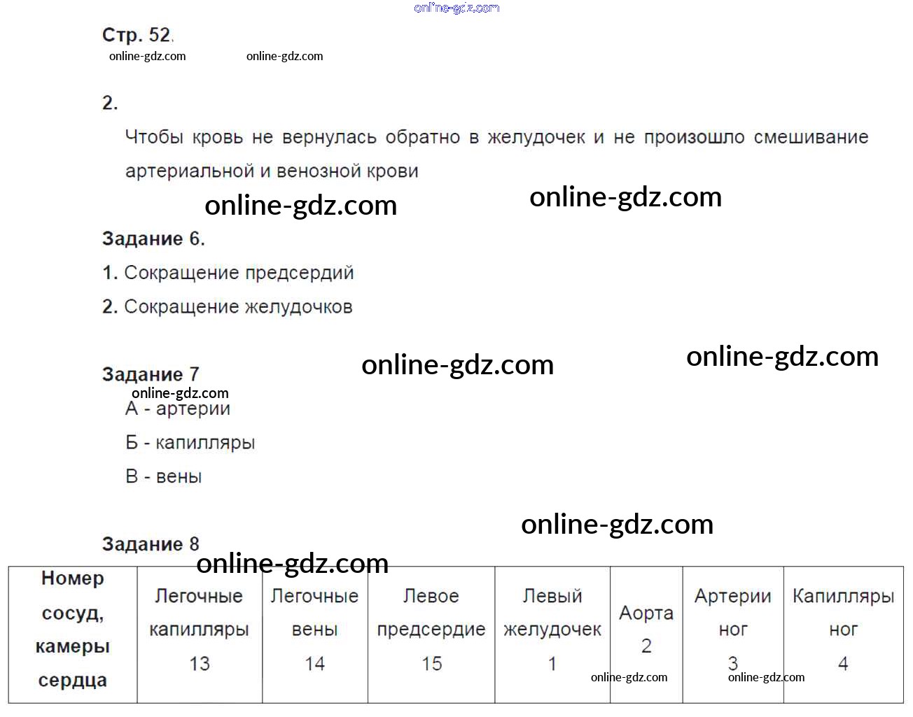 Готовые домашние задания по Биологии за 8 класс Рабочая тетрадь Маш, Драгомилов Алгоритм успеха 2019 - Часть 1. Страницы 52