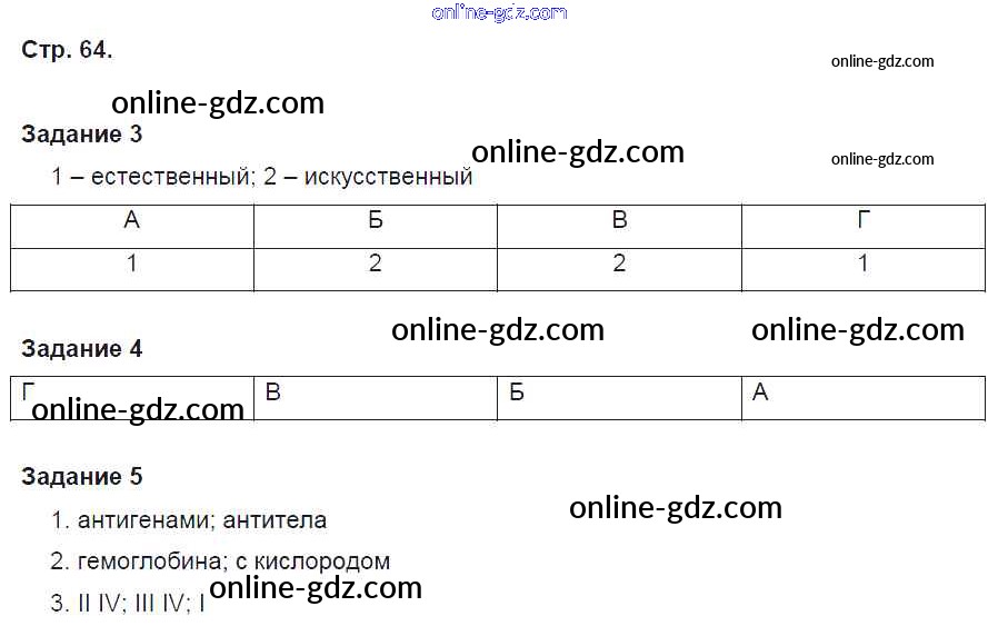 Готовые домашние задания по Биологии за 8 класс Рабочая тетрадь Маш, Драгомилов Алгоритм успеха 2019 - Часть 1. Страницы 64