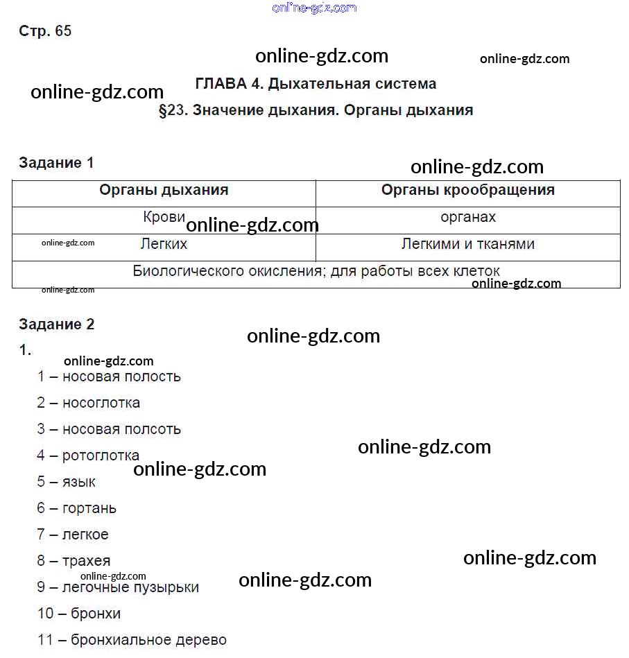 Готовые домашние задания по Биологии за 8 класс Рабочая тетрадь Маш, Драгомилов Алгоритм успеха 2019 - Часть 1. Страницы 65