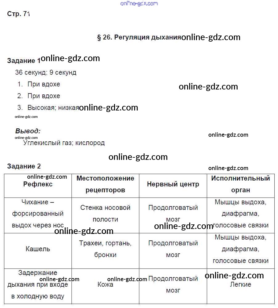Готовые домашние задания по Биологии за 8 класс Рабочая тетрадь Маш, Драгомилов Алгоритм успеха 2019 - Часть 1. Страницы 71
