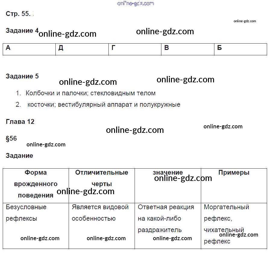 Готовые домашние задания по Биологии за 8 класс Рабочая тетрадь Маш, Драгомилов Алгоритм успеха 2019 - Часть 2. Страницы 55