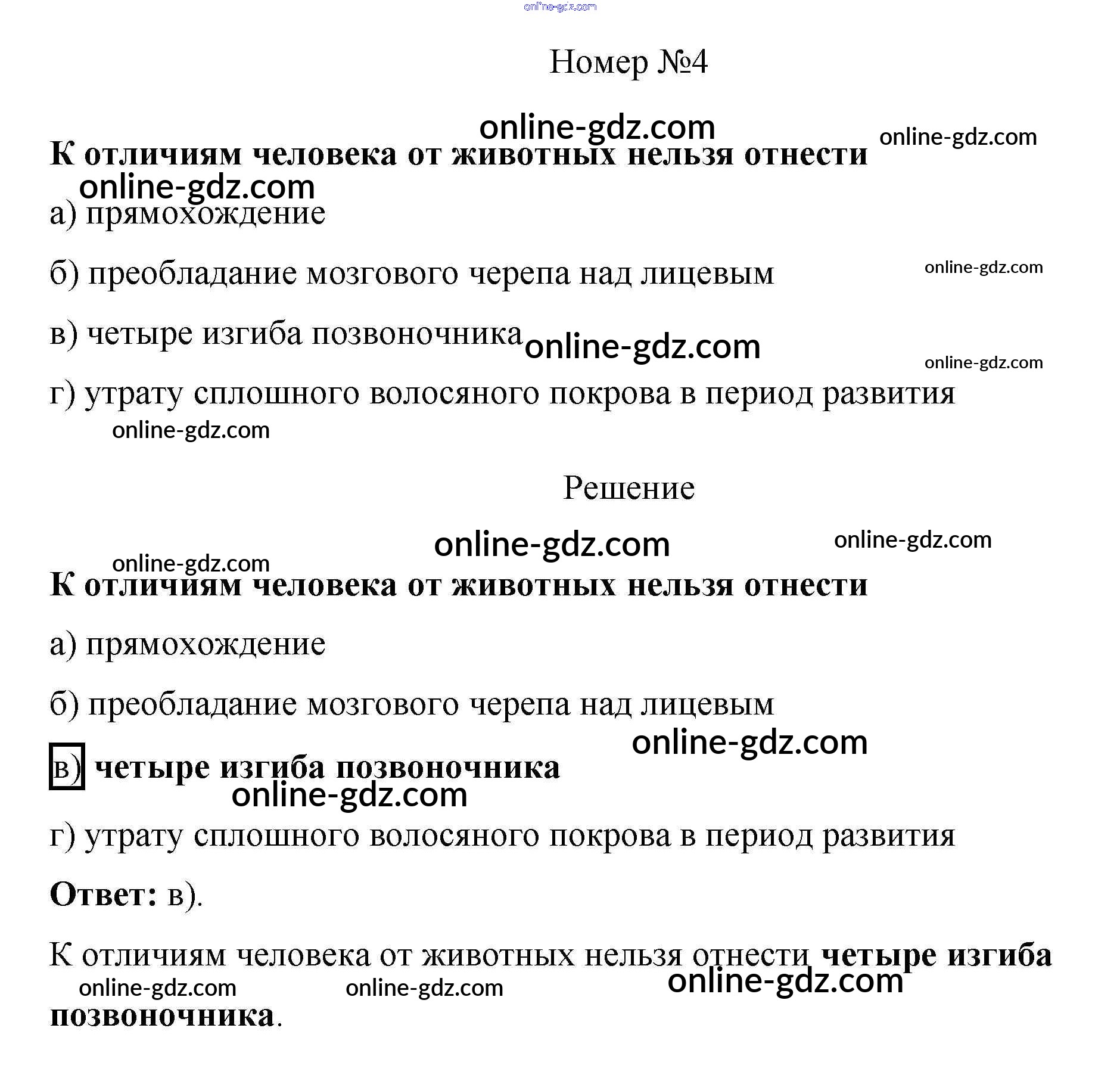Готовые домашние задания по Биологии за 8 класс Рабочая тетрадь Пасечник, Швецов Линия жизни 2019 - Тестовый контроль 1 4