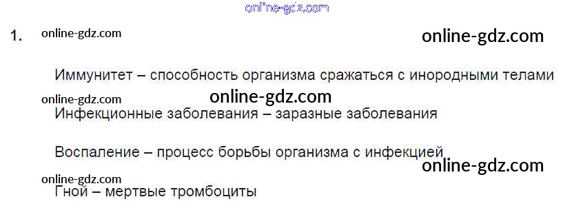Готовые домашние задания по Биологии за 8 класс Рабочая тетрадь Пасечник, Швецов Линия жизни 2019 - §16. Иммунитет 1