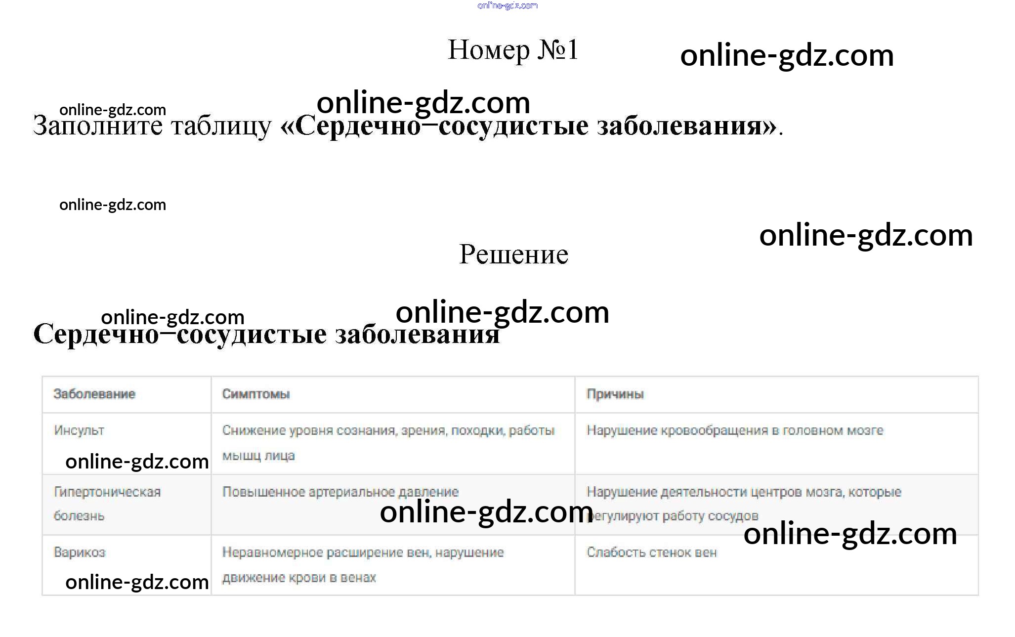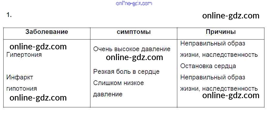 Готовые домашние задания по Биологии за 8 класс Рабочая тетрадь Пасечник, Швецов Линия жизни 2019 - §19. Сердечно-сосудистые заболевания 1