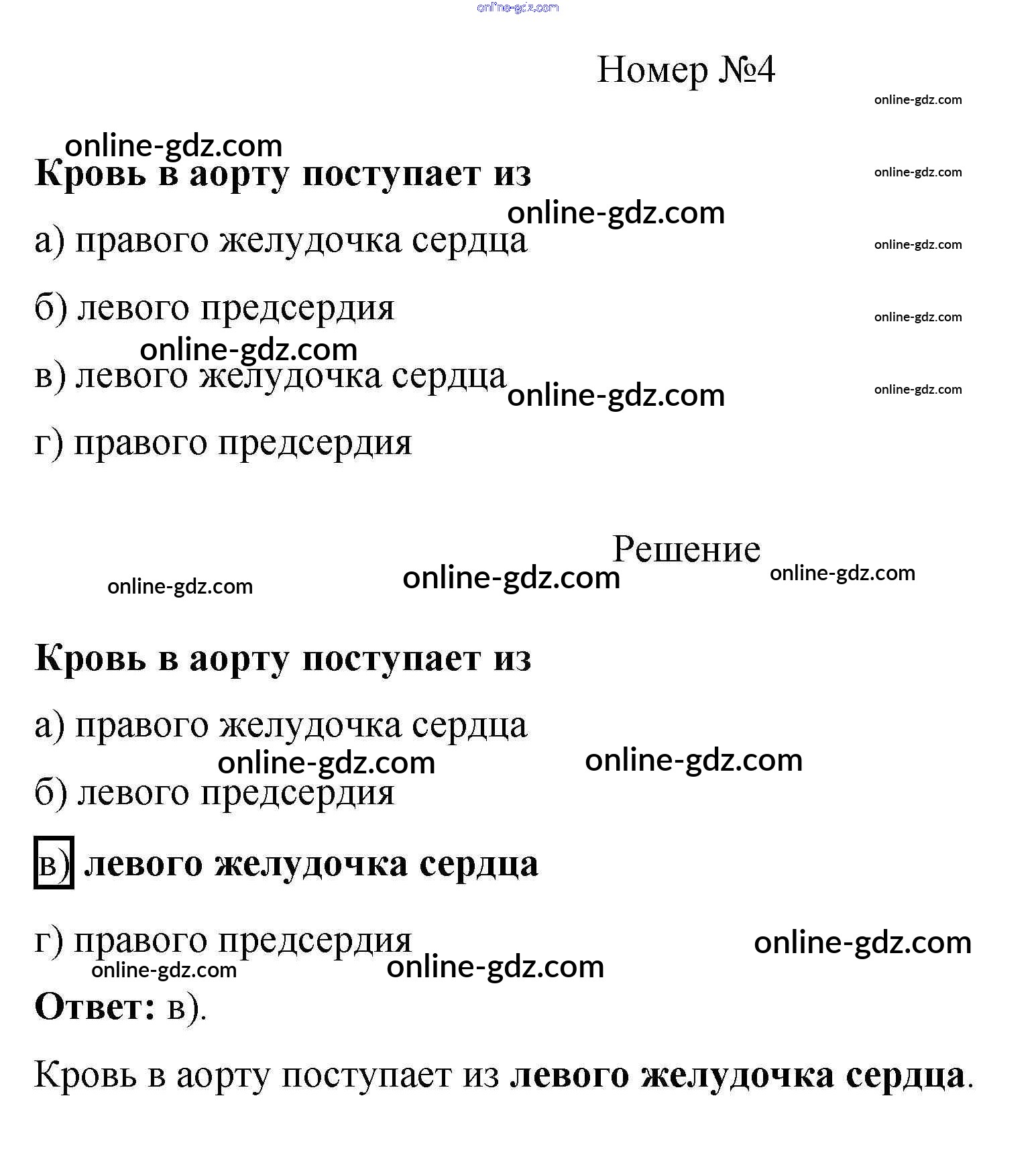 Готовые домашние задания по Биологии за 8 класс Рабочая тетрадь Пасечник, Швецов Линия жизни 2019 - Тестовый контроль 5 4