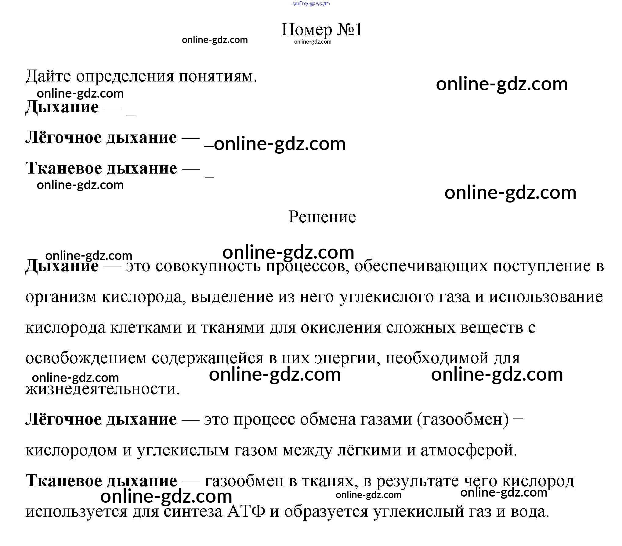 Готовые домашние задания по Биологии за 8 класс Рабочая тетрадь Пасечник, Швецов Линия жизни 2019 - §20. Дыхание и его значение 1