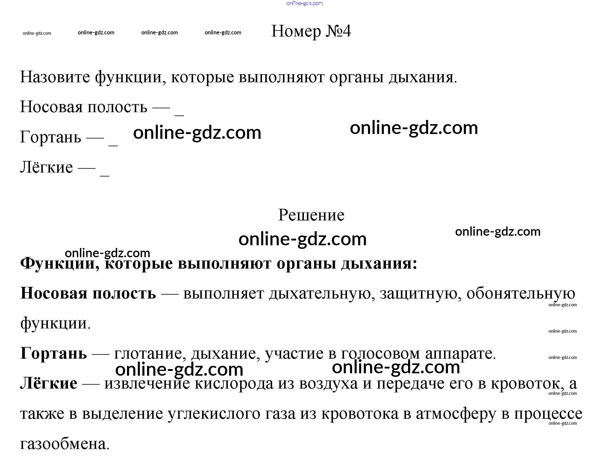 Готовые домашние задания по Биологии за 8 класс Рабочая тетрадь Пасечник, Швецов Линия жизни 2019 - §20. Дыхание и его значение 4