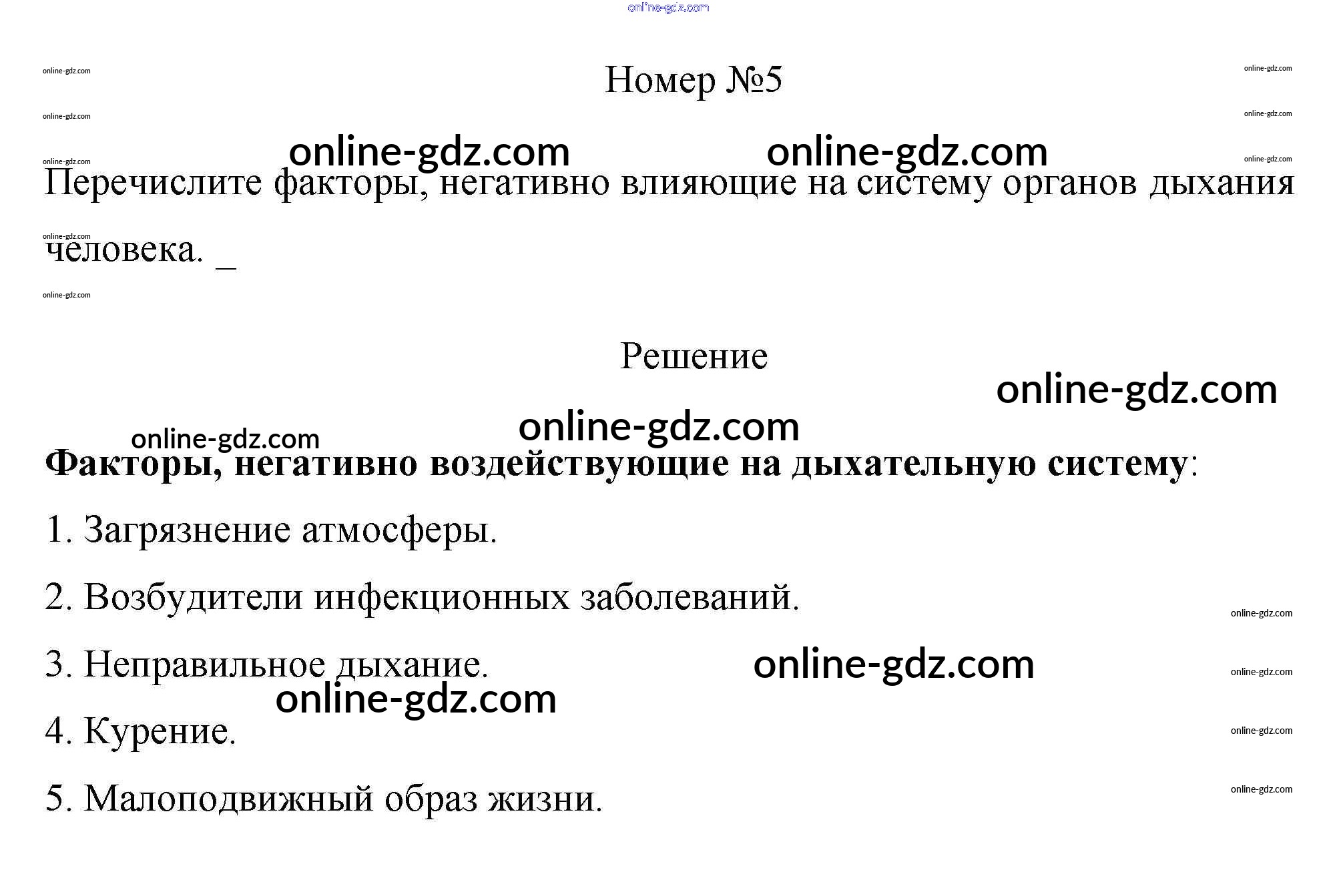 Готовые домашние задания по Биологии за 8 класс Рабочая тетрадь Пасечник, Швецов Линия жизни 2019 - §22. Регуляция дыхания 5