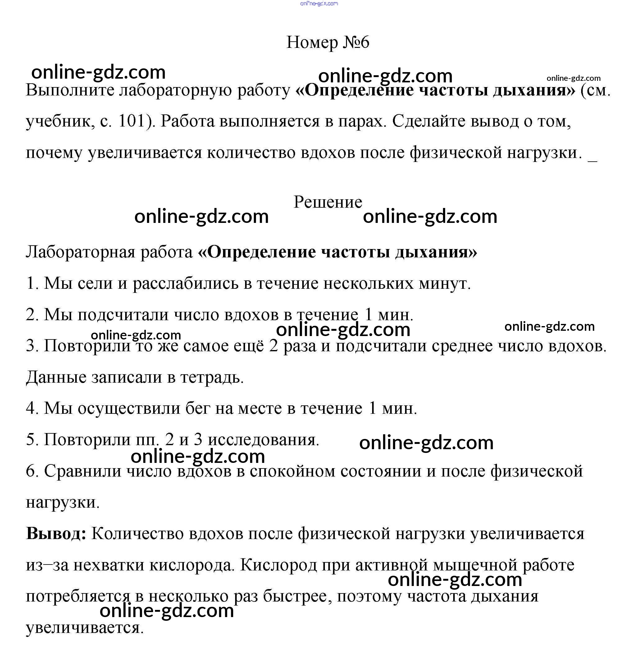 Готовые домашние задания по Биологии за 8 класс Рабочая тетрадь Пасечник, Швецов Линия жизни 2019 - §22. Регуляция дыхания 6