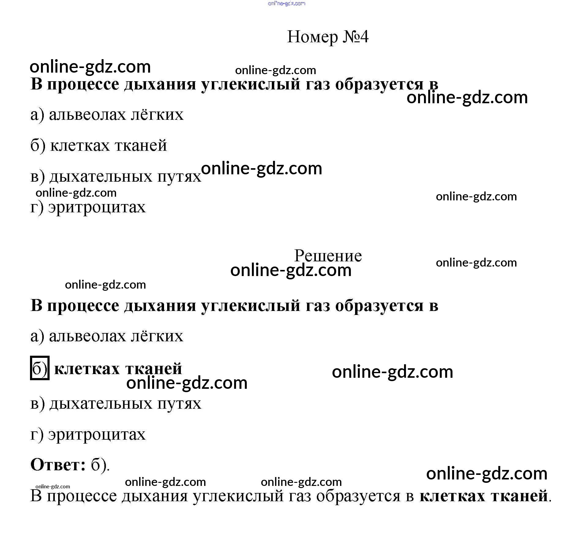 Готовые домашние задания по Биологии за 8 класс Рабочая тетрадь Пасечник, Швецов Линия жизни 2019 - Тестовый контроль 6 4