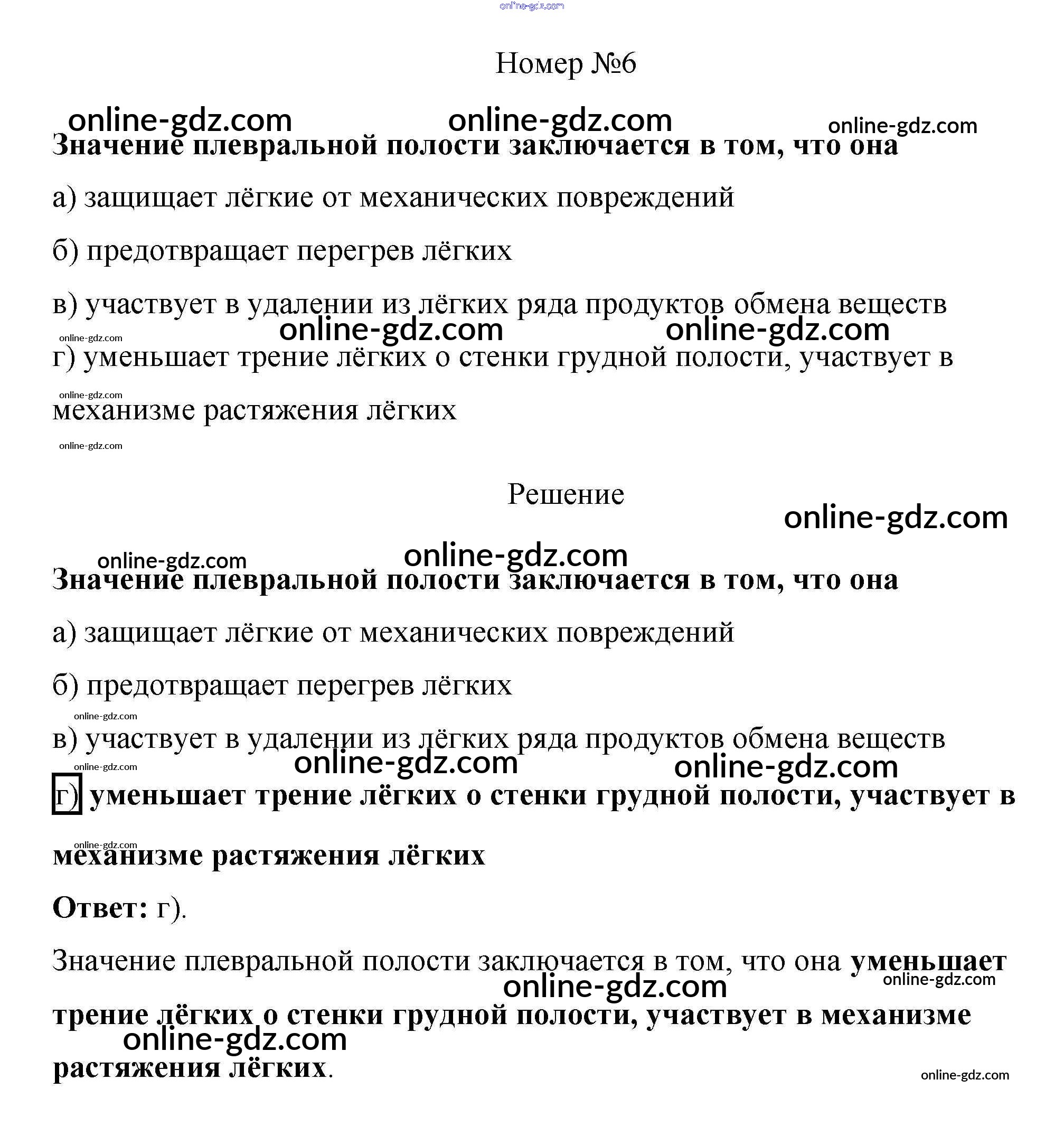 Готовые домашние задания по Биологии за 8 класс Рабочая тетрадь Пасечник, Швецов Линия жизни 2019 - Тестовый контроль 6 6
