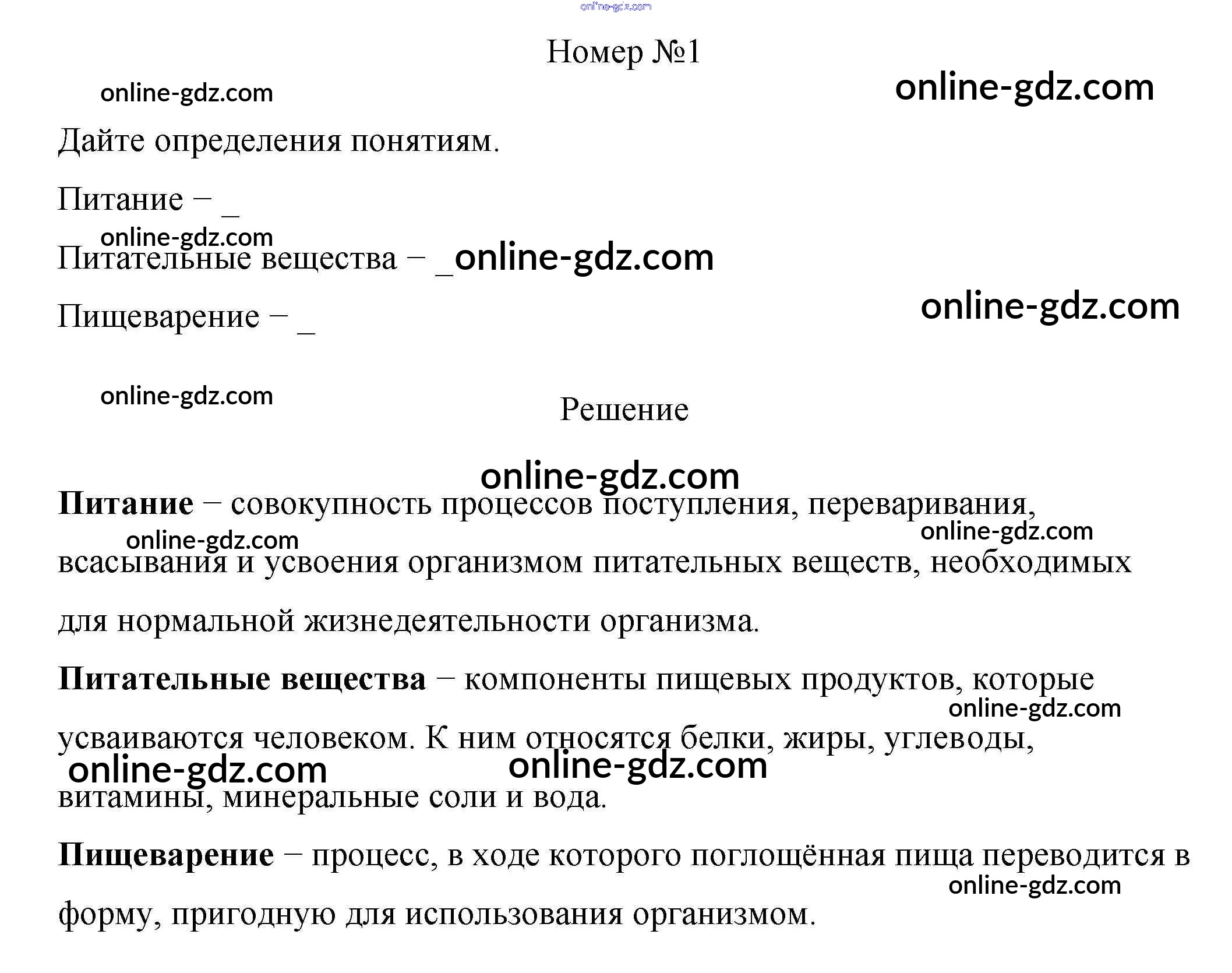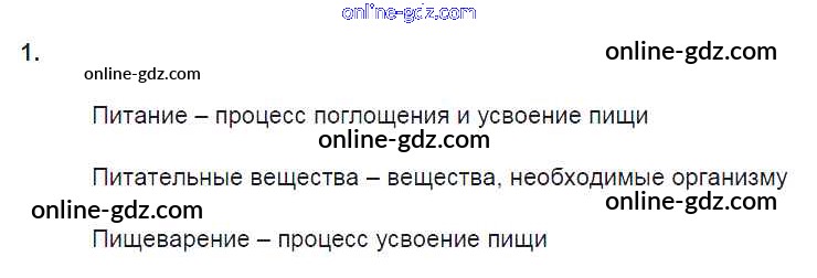 Готовые домашние задания по Биологии за 8 класс Рабочая тетрадь Пасечник, Швецов Линия жизни 2019 - §24. Питание и его значение 1
