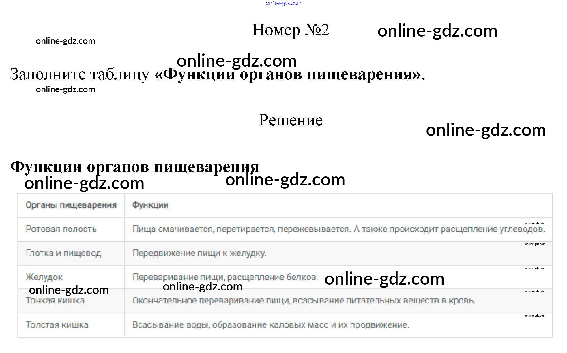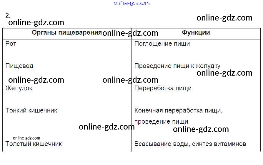 Готовые домашние задания по Биологии за 8 класс Рабочая тетрадь Пасечник, Швецов Линия жизни 2019 - §24. Питание и его значение 2