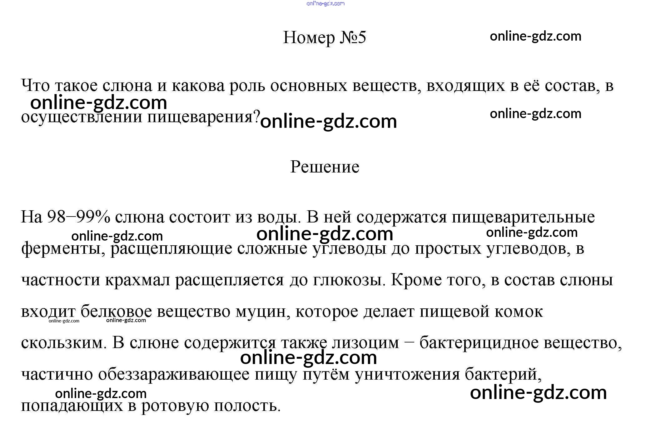 Готовые домашние задания по Биологии за 8 класс Рабочая тетрадь Пасечник, Швецов Линия жизни 2019 - §25. Пищеварение в ротовой полости 5