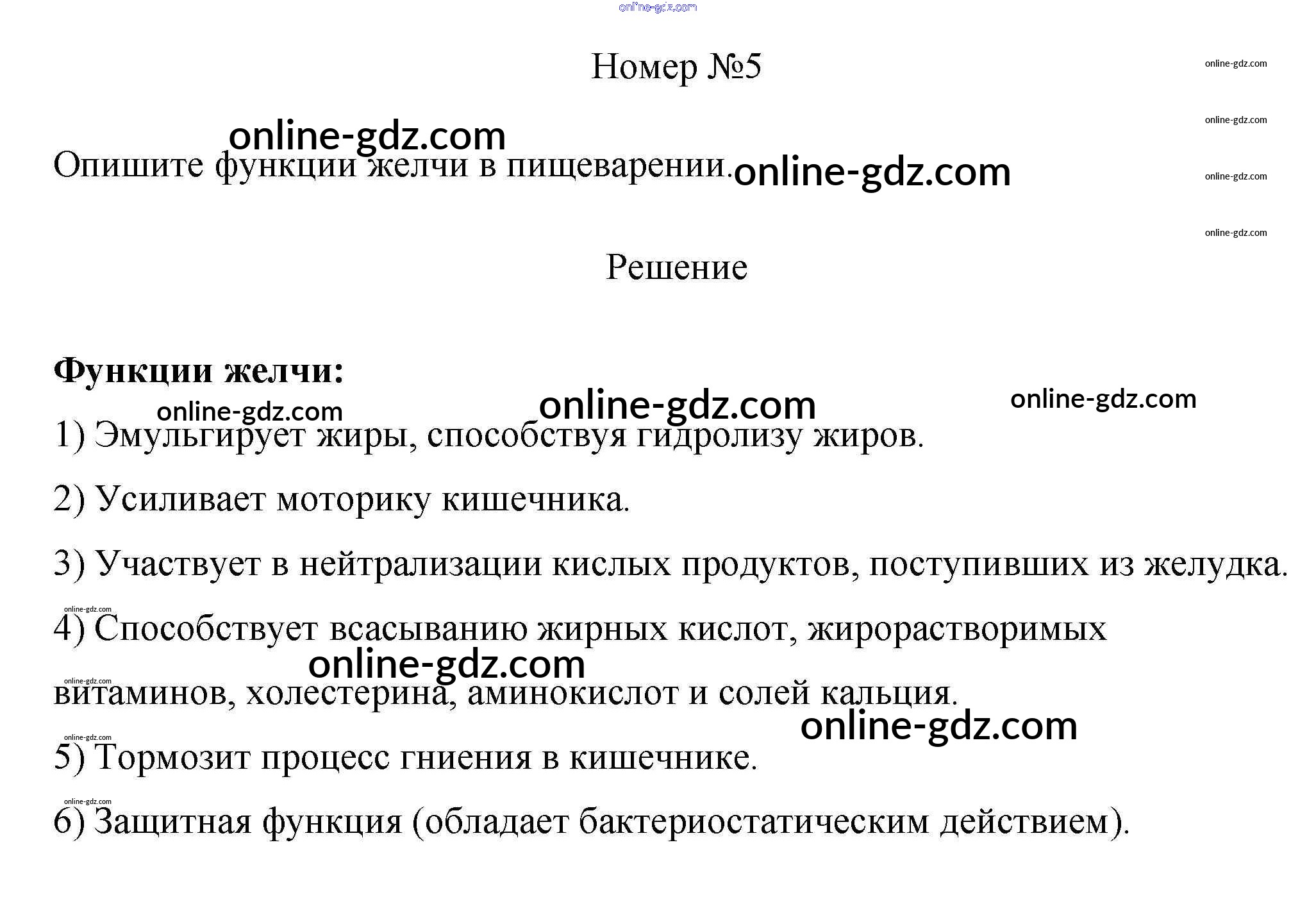 Готовые домашние задания по Биологии за 8 класс Рабочая тетрадь Пасечник, Швецов Линия жизни 2019 - §26. Пищеварение в желудке и кишечнике 5