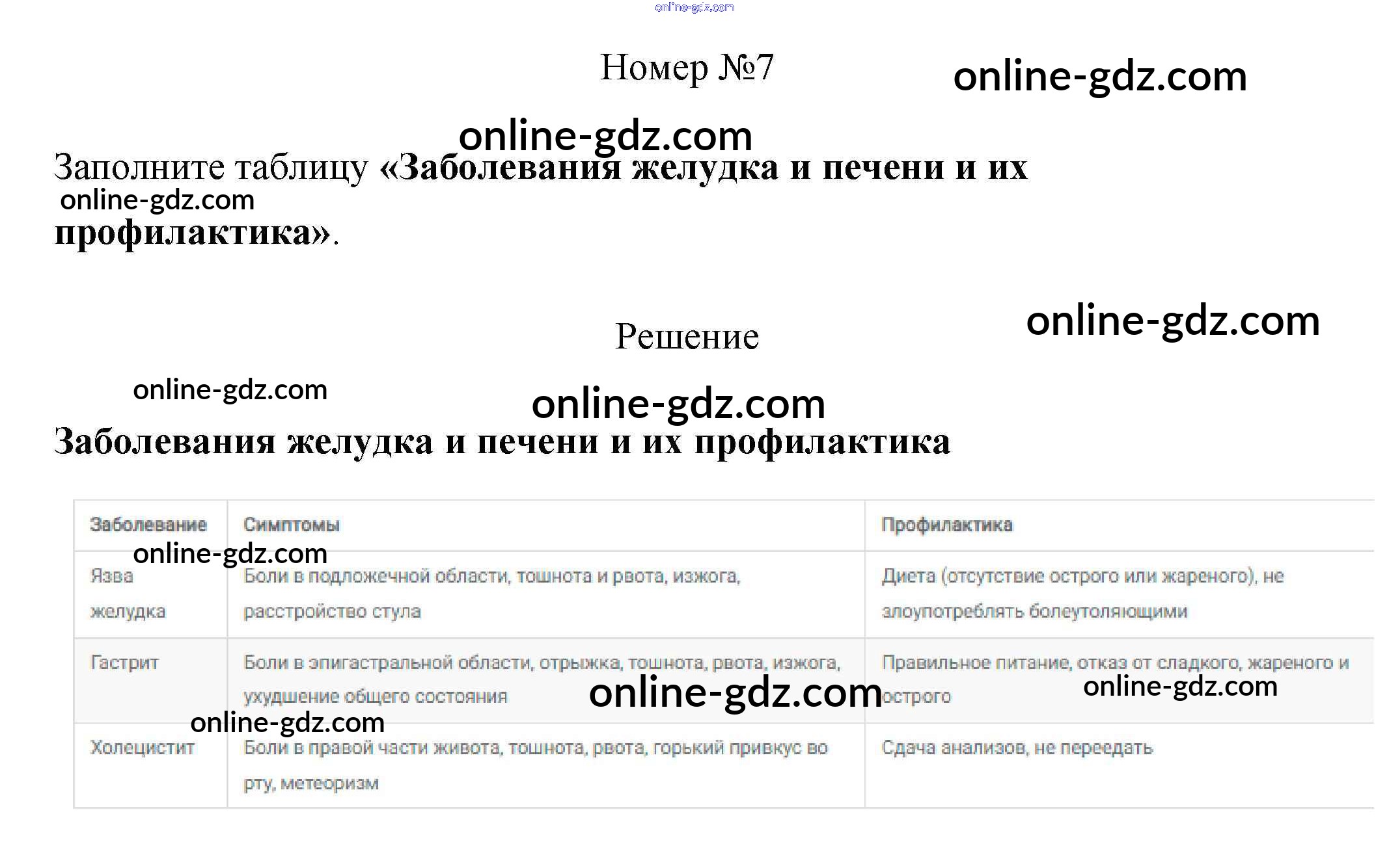 Готовые домашние задания по Биологии за 8 класс Рабочая тетрадь Пасечник, Швецов Линия жизни 2019 - §26. Пищеварение в желудке и кишечнике 7