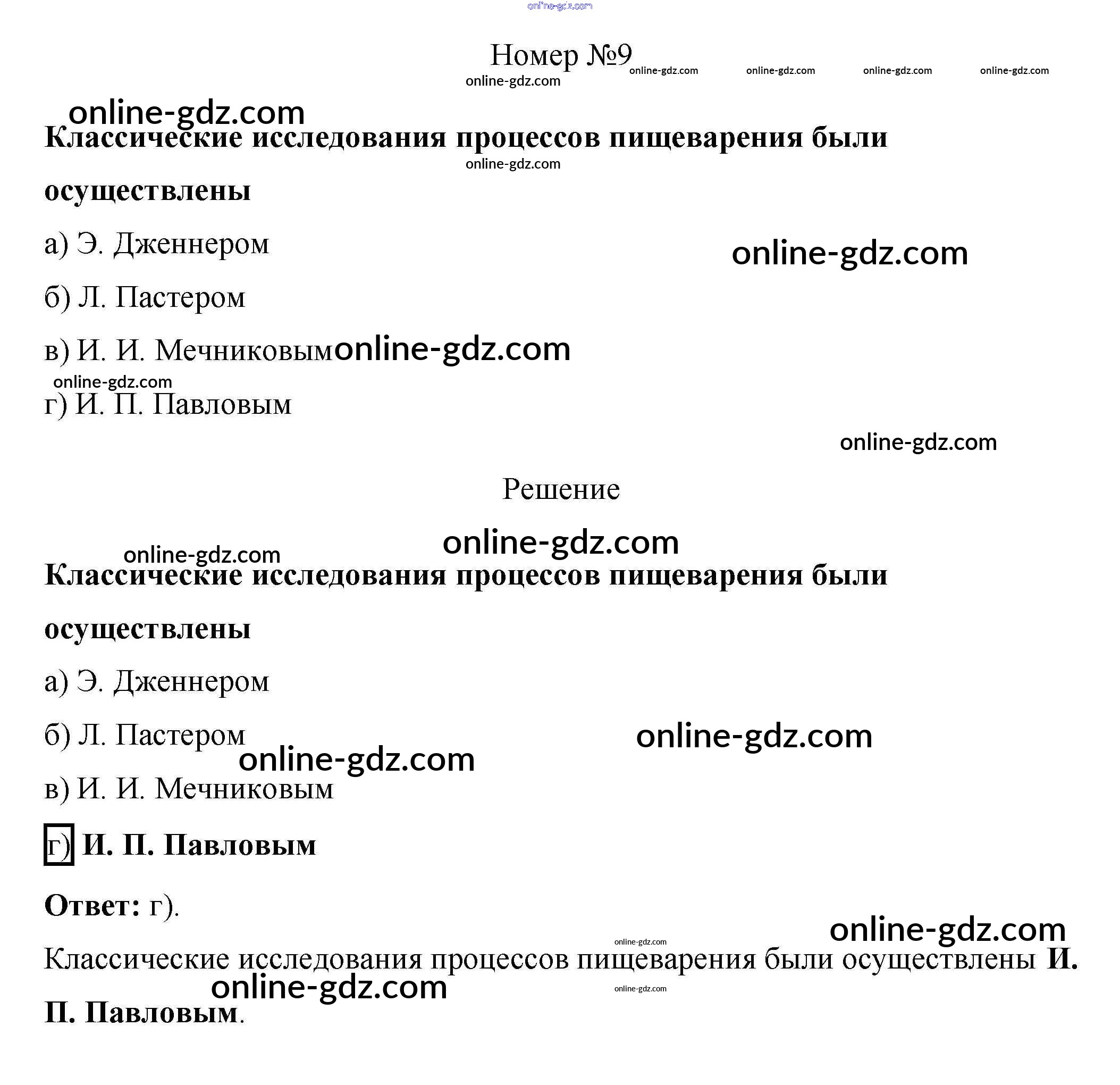 Готовые домашние задания по Биологии за 8 класс Рабочая тетрадь Пасечник, Швецов Линия жизни 2019 - Тестовый контроль 7 9