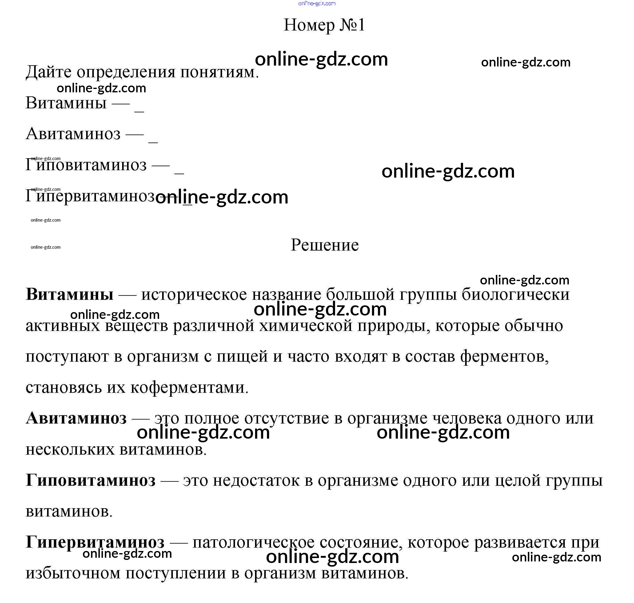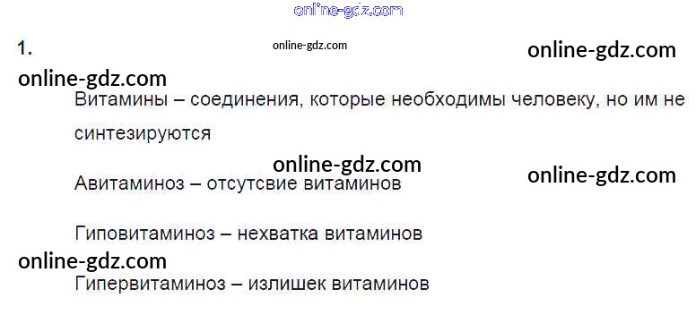 Готовые домашние задания по Биологии за 8 класс Рабочая тетрадь Пасечник, Швецов Линия жизни 2019 - §31. Витамины и их роль в организме человека 1