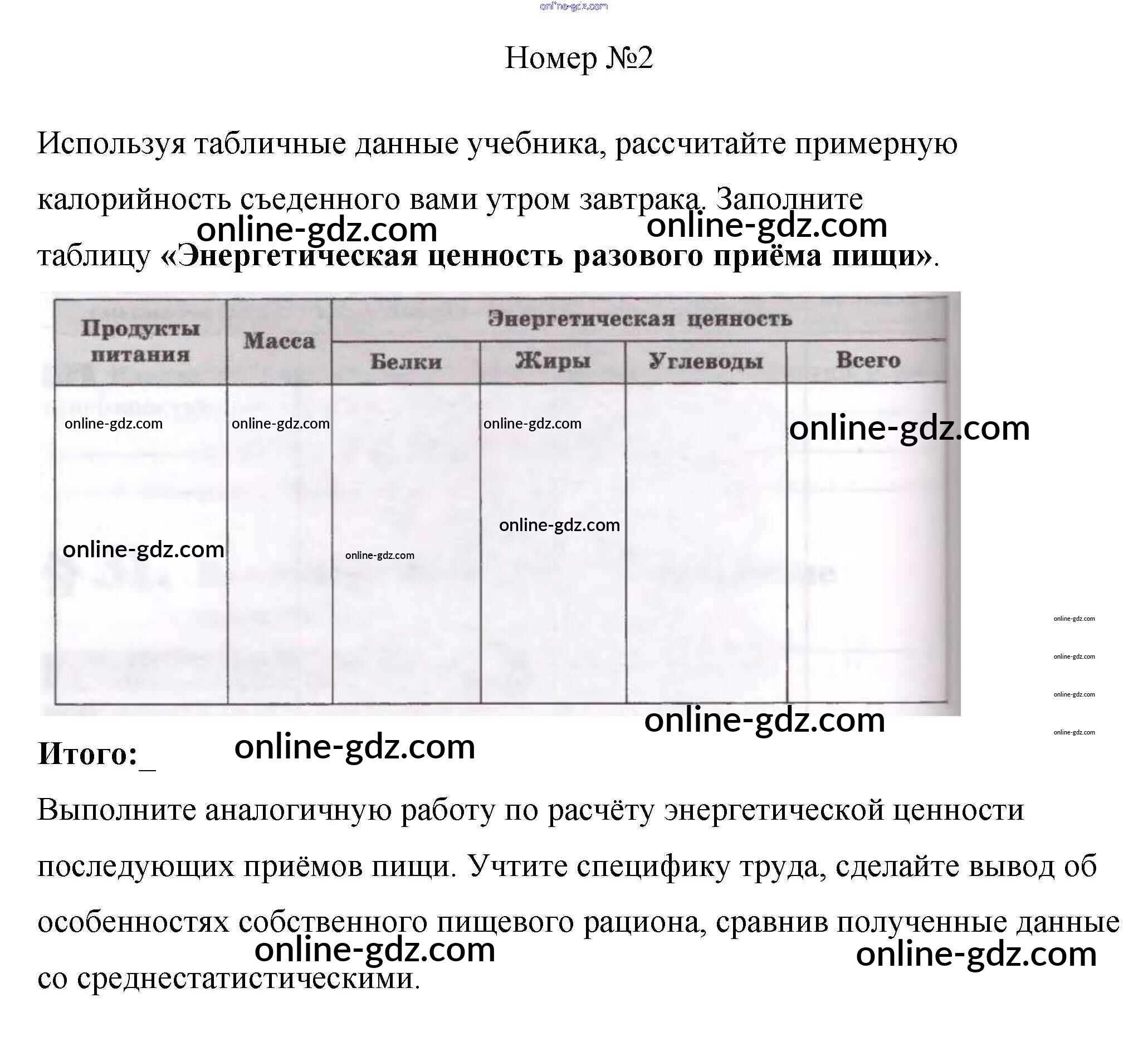 Готовые домашние задания по Биологии за 8 класс Рабочая тетрадь Пасечник, Швецов Линия жизни 2019 - §32. Нормы питания 2