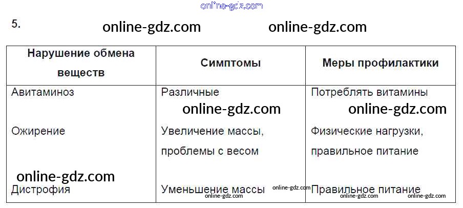 Готовые домашние задания по Биологии за 8 класс Рабочая тетрадь Пасечник, Швецов Линия жизни 2019 - §32. Нормы питания 5