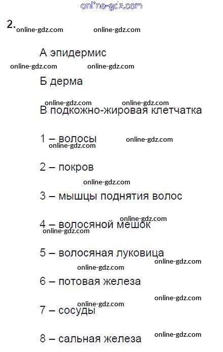 Готовые домашние задания по Биологии за 8 класс Рабочая тетрадь Пасечник, Швецов Линия жизни 2019 - §35. Наружные покровы тела 2