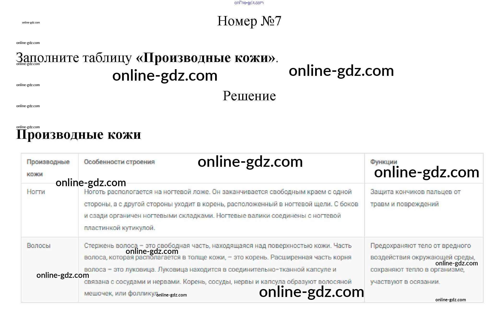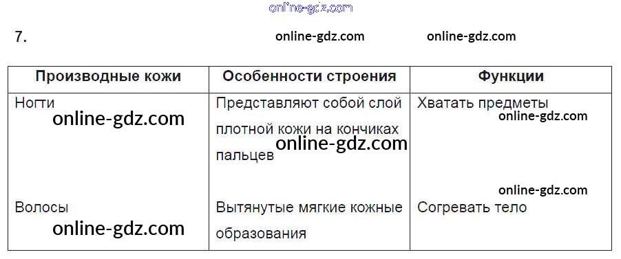 Готовые домашние задания по Биологии за 8 класс Рабочая тетрадь Пасечник, Швецов Линия жизни 2019 - §35. Наружные покровы тела 7