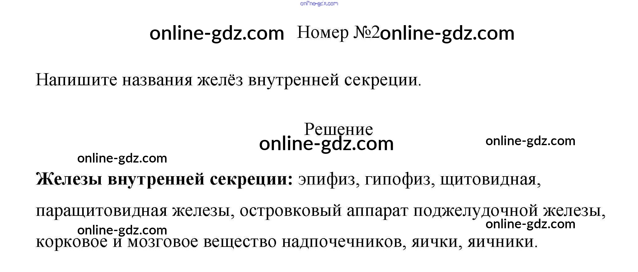 Готовые домашние задания по Биологии за 8 класс Рабочая тетрадь Пасечник, Швецов Линия жизни 2019 - §38. Железы внутренней секреции и их функции 2