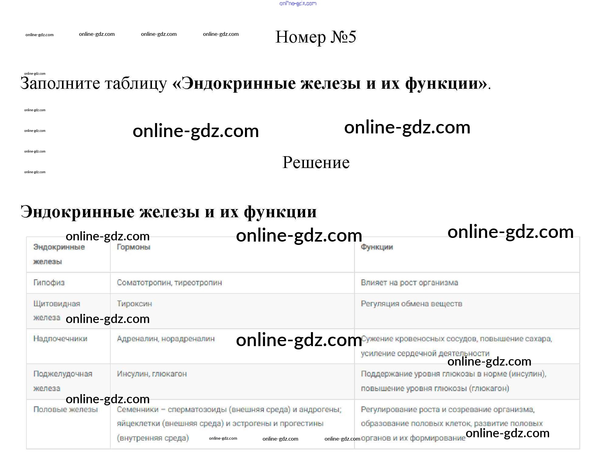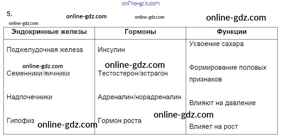 Готовые домашние задания по Биологии за 8 класс Рабочая тетрадь Пасечник, Швецов Линия жизни 2019 - §38. Железы внутренней секреции и их функции 5