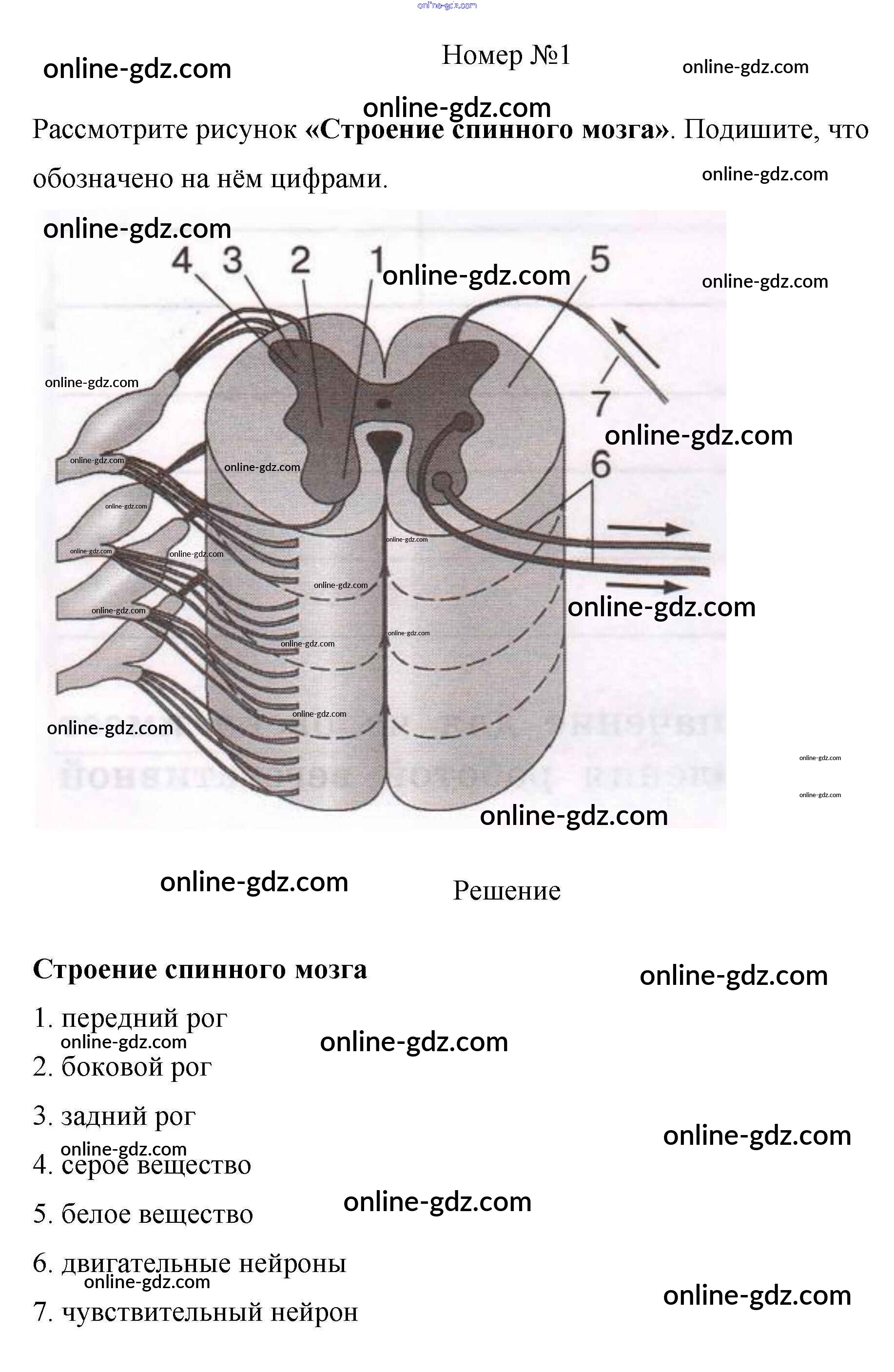 Готовые домашние задания по Биологии за 8 класс Рабочая тетрадь Пасечник, Швецов Линия жизни 2019 - §41. Спинной мозг 1