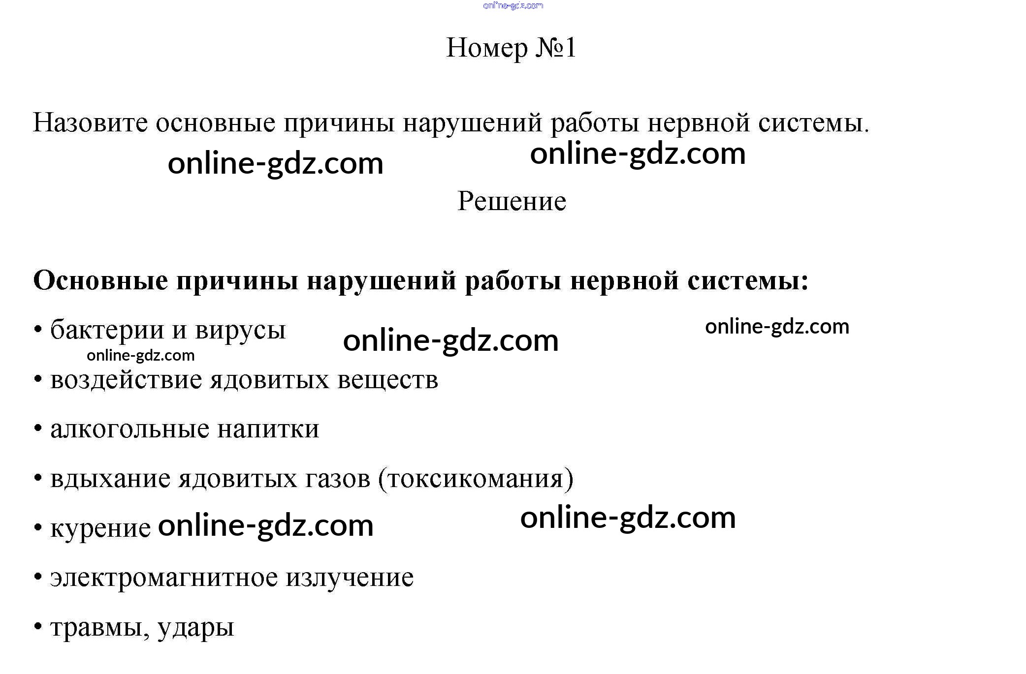 Готовые домашние задания по Биологии за 8 класс Рабочая тетрадь Пасечник, Швецов Линия жизни 2019 - §44. Нарушения в работе нервной системы и их предупреждение 1