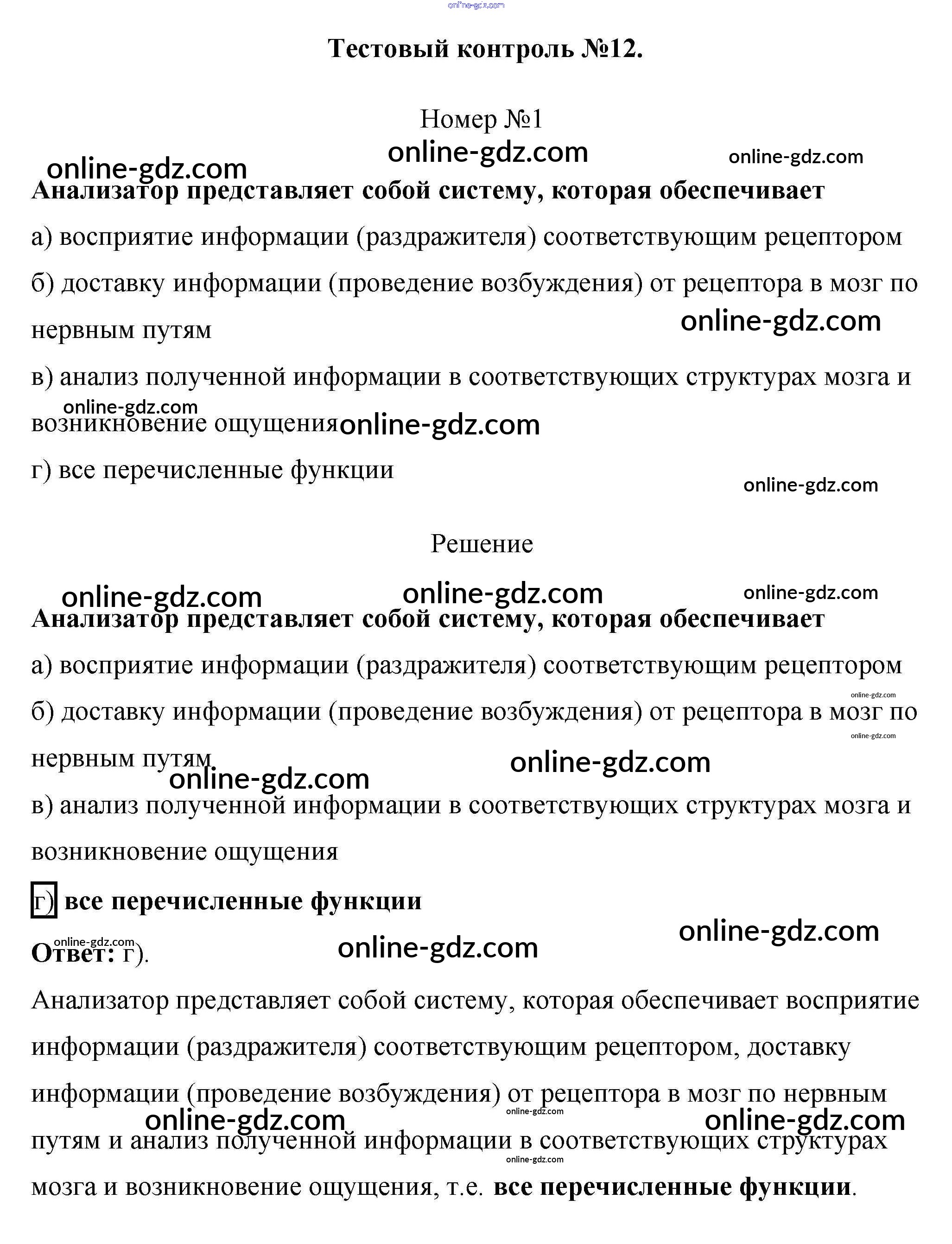 Готовые домашние задания по Биологии за 8 класс Рабочая тетрадь Пасечник, Швецов Линия жизни 2019 - Тестовый контроль 12 1