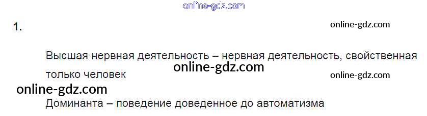 Готовые домашние задания по Биологии за 8 класс Рабочая тетрадь Пасечник, Швецов Линия жизни 2019 - §49. Высшая нервная деятельность 1
