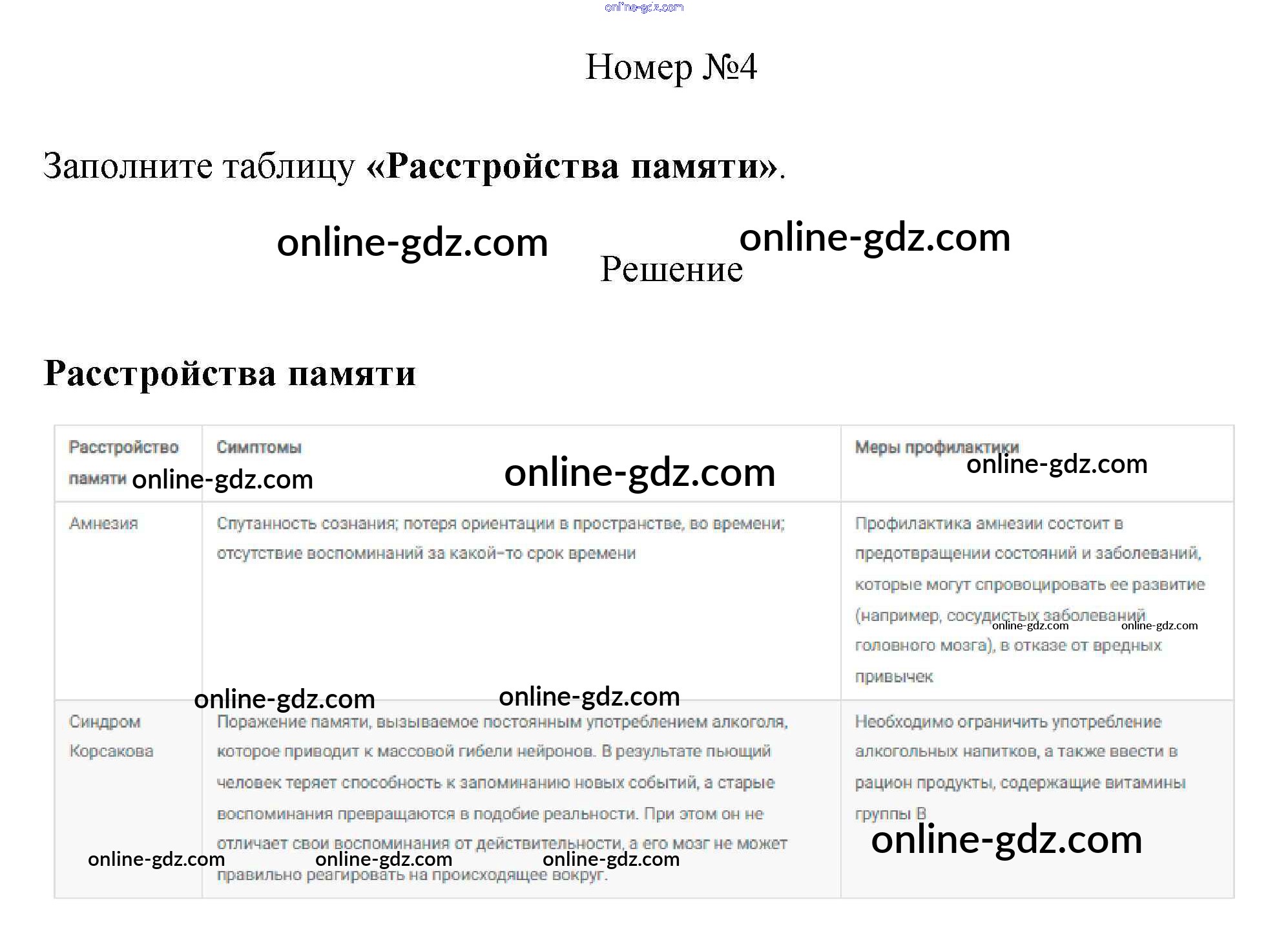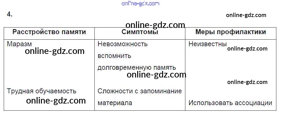 Готовые домашние задания по Биологии за 8 класс Рабочая тетрадь Пасечник, Швецов Линия жизни 2019 - §50. Память и обучение 4