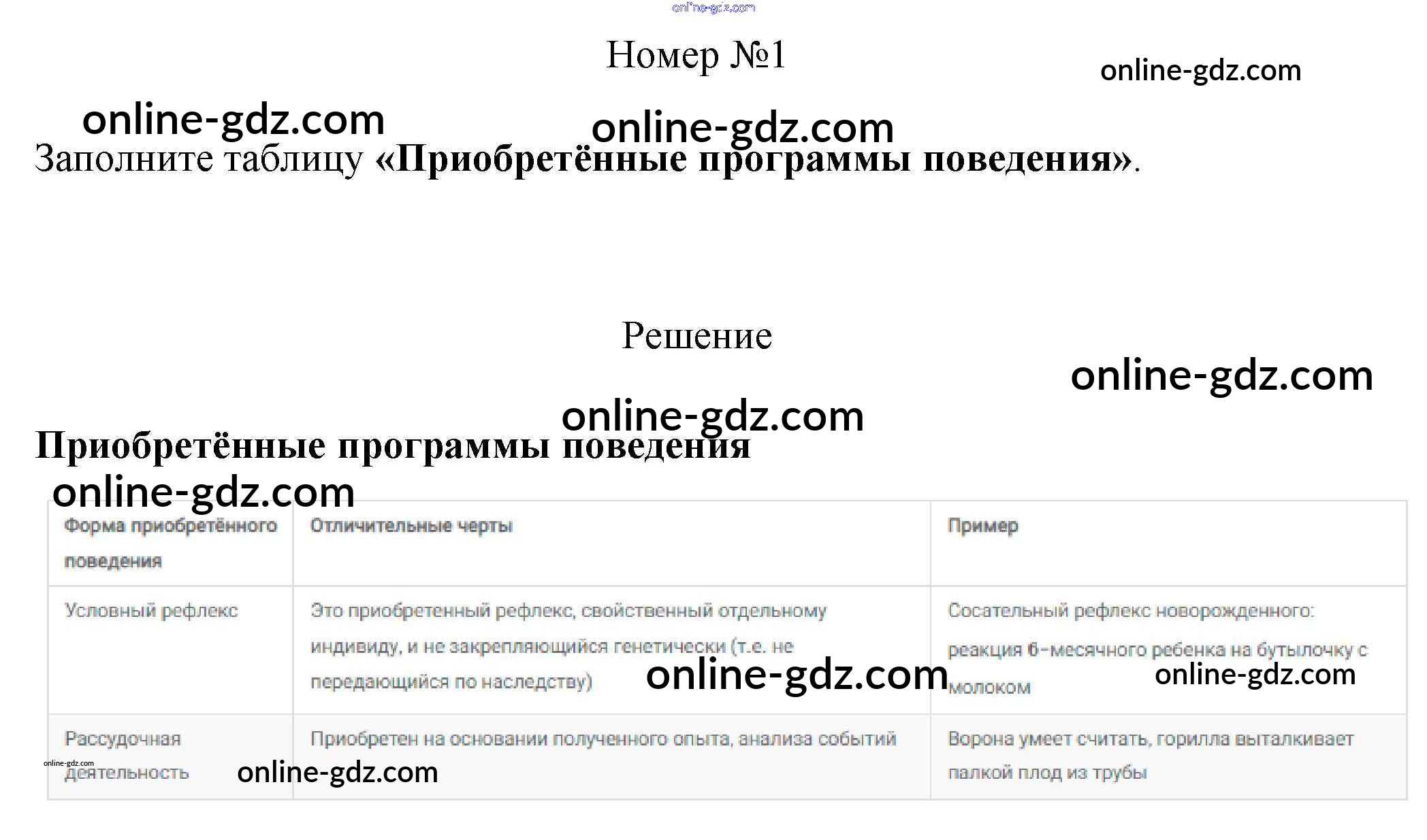 Готовые домашние задания по Биологии за 8 класс Рабочая тетрадь Пасечник, Швецов Линия жизни 2019 - §51. Врождённое и приобретённое поведение 1