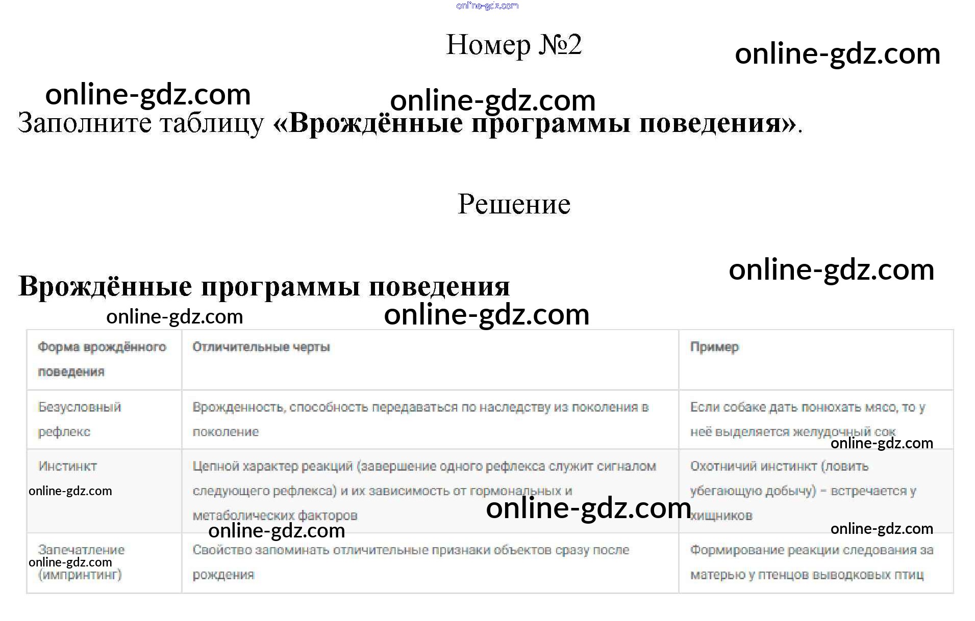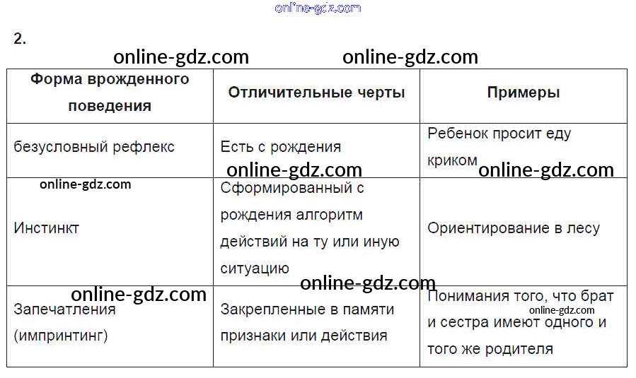 Готовые домашние задания по Биологии за 8 класс Рабочая тетрадь Пасечник, Швецов Линия жизни 2019 - §51. Врождённое и приобретённое поведение 2