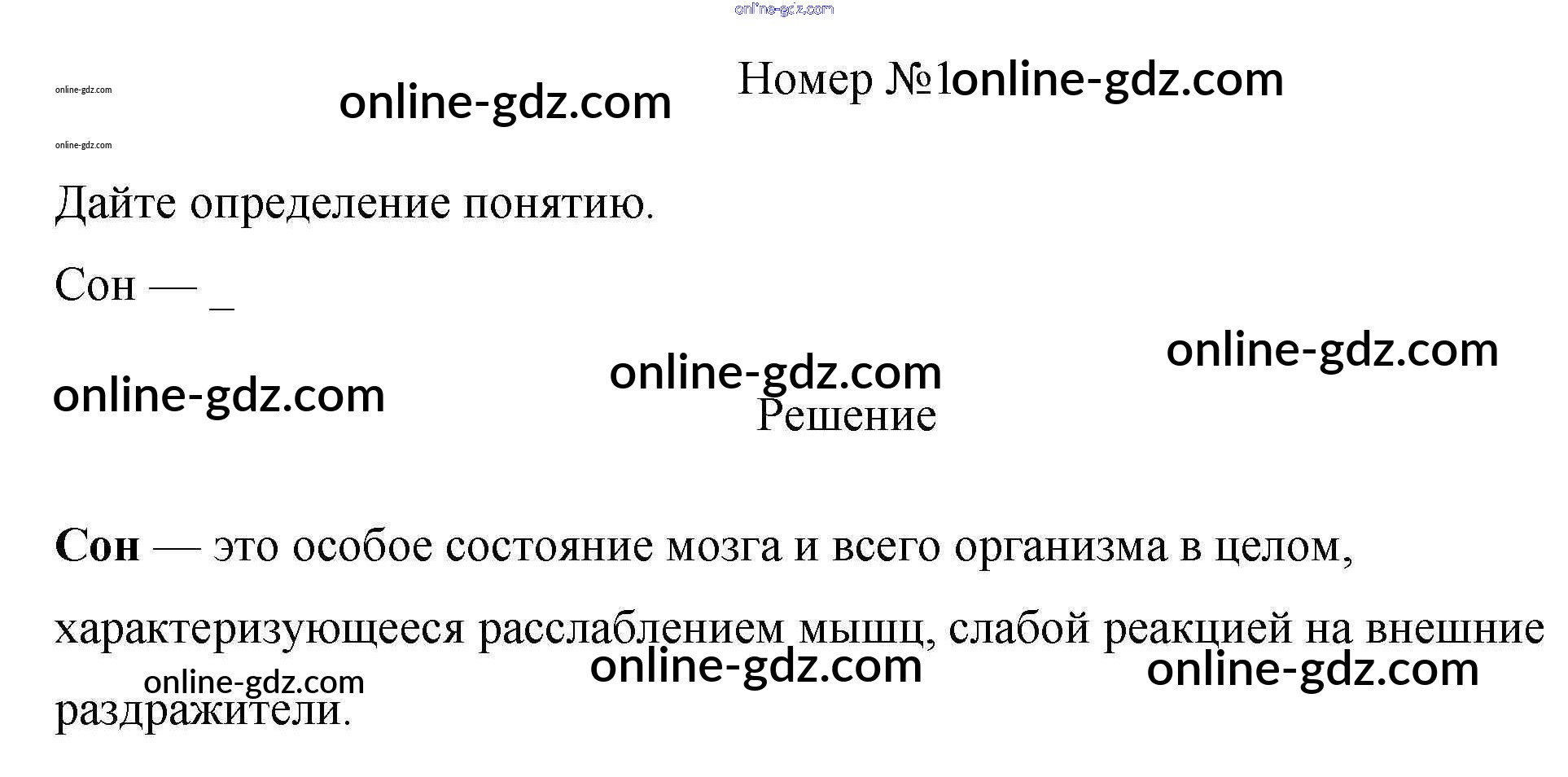 Готовые домашние задания по Биологии за 8 класс Рабочая тетрадь Пасечник, Швецов Линия жизни 2019 - §52. Сон и бодрствование 1