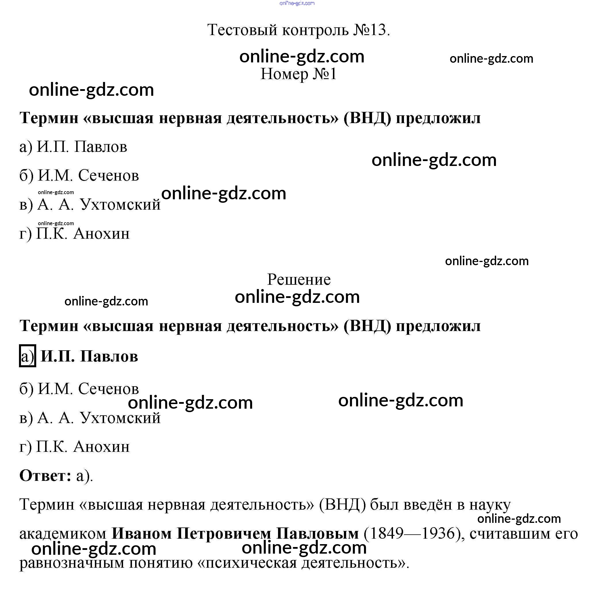 Готовые домашние задания по Биологии за 8 класс Рабочая тетрадь Пасечник, Швецов Линия жизни 2019 - Тестовый контроль 13 1