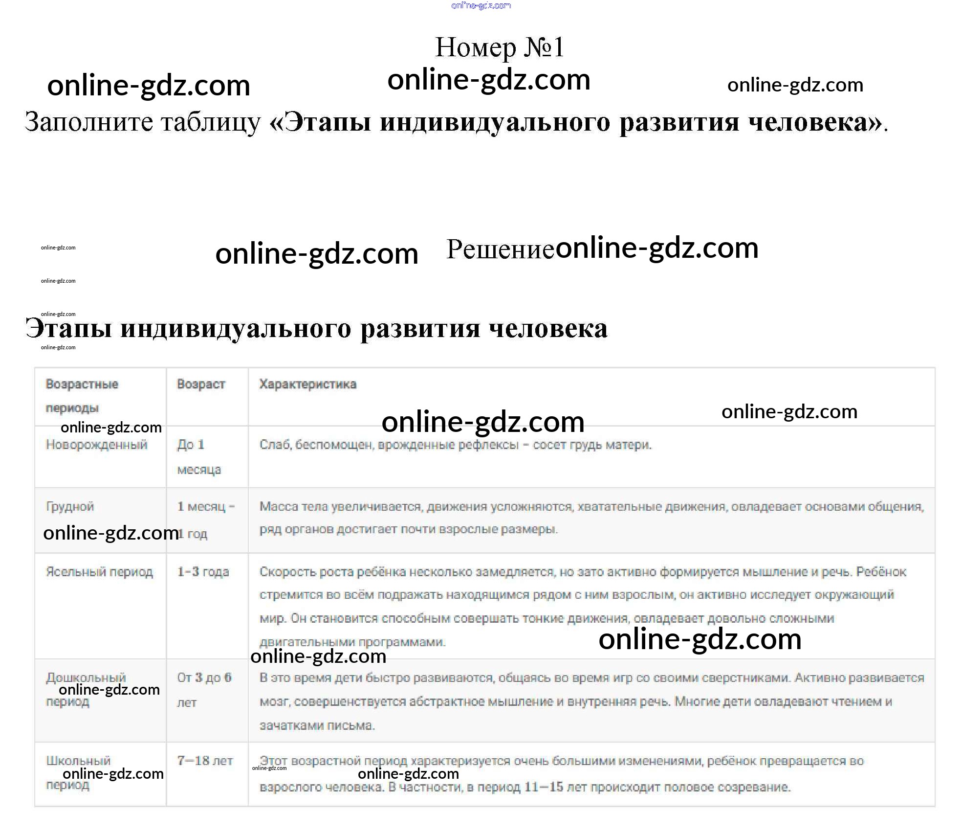 Готовые домашние задания по Биологии за 8 класс Рабочая тетрадь Пасечник, Швецов Линия жизни 2019 - §57. Рост и развитие реб1нка после рождения 1