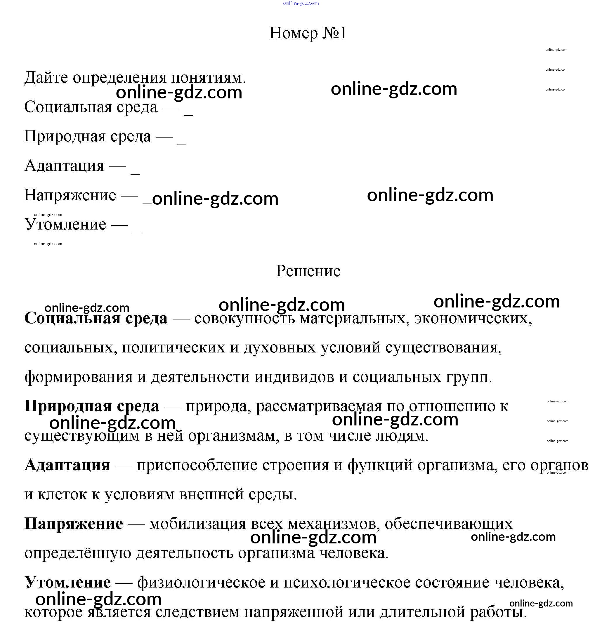 Готовые домашние задания по Биологии за 8 класс Рабочая тетрадь Пасечник, Швецов Линия жизни 2019 - §58. Социальная и природная среда человека 1