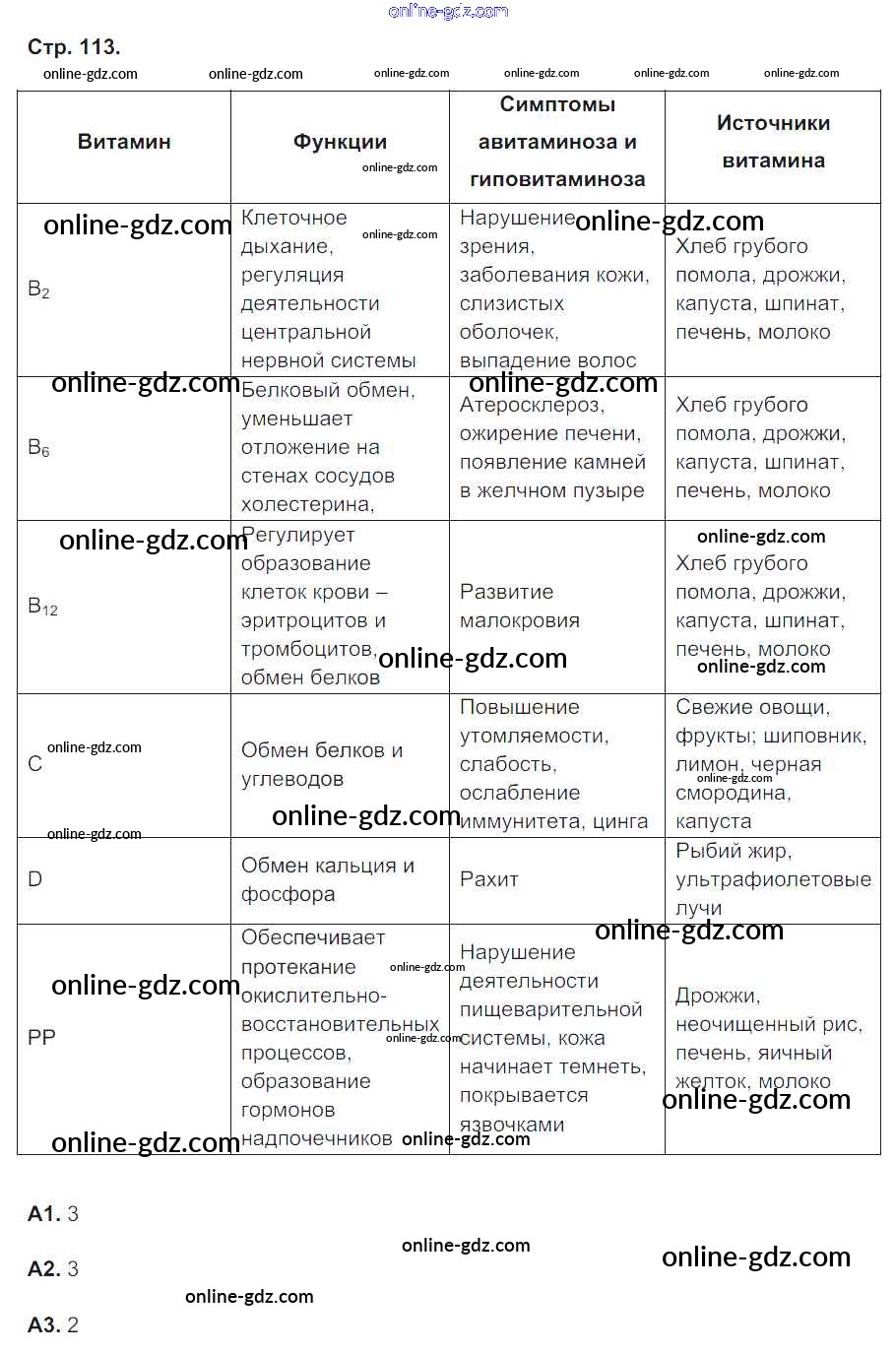 Готовые домашние задания по Биологии за 8 класс Рабочая тетрадь Сонин, Агафонова УМК 2017 - Страницы 113