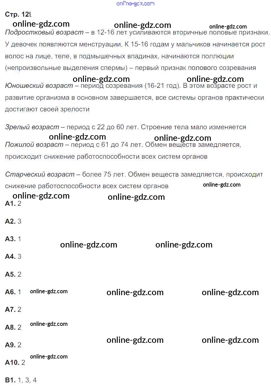 Готовые домашние задания по Биологии за 8 класс Рабочая тетрадь Сонин, Агафонова УМК 2017 - Страницы 129