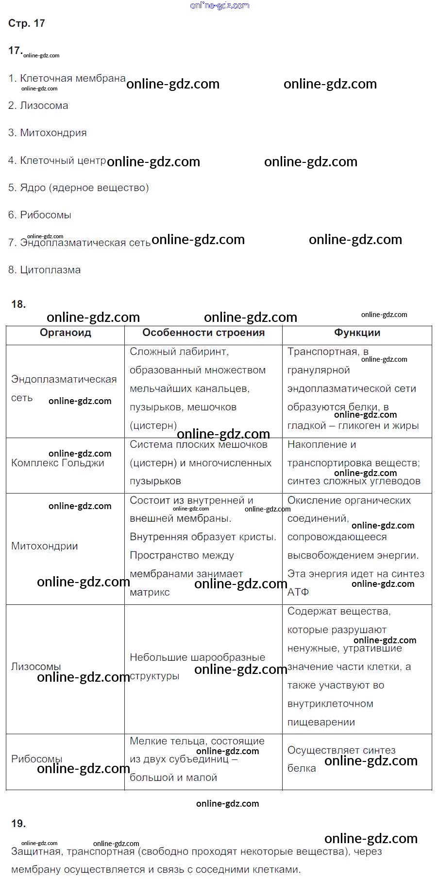 Готовые домашние задания по Биологии за 8 класс Рабочая тетрадь Сонин, Агафонова УМК 2017 - Страницы 17