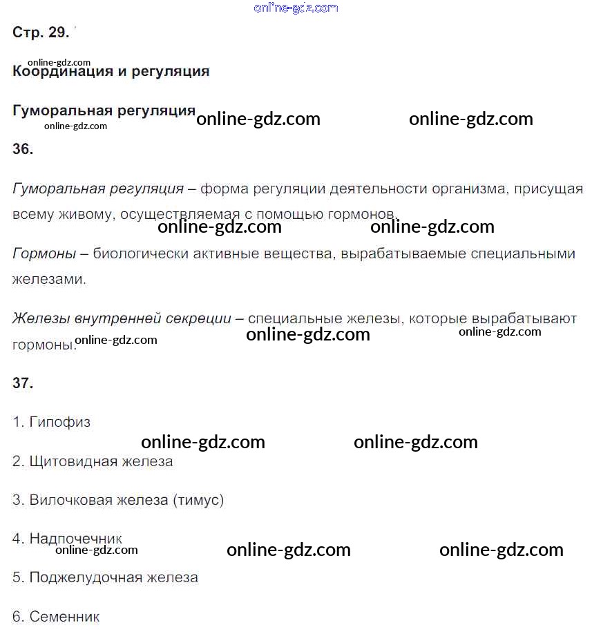 Готовые домашние задания по Биологии за 8 класс Рабочая тетрадь Сонин, Агафонова УМК 2017 - Страницы 29
