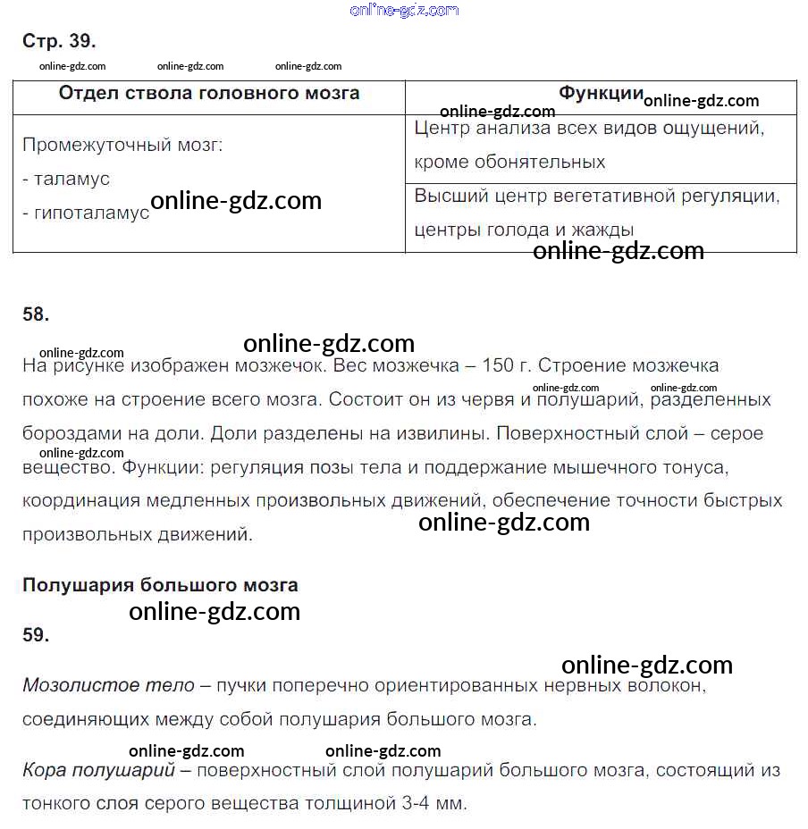 Готовые домашние задания по Биологии за 8 класс Рабочая тетрадь Сонин, Агафонова УМК 2017 - Страницы 39