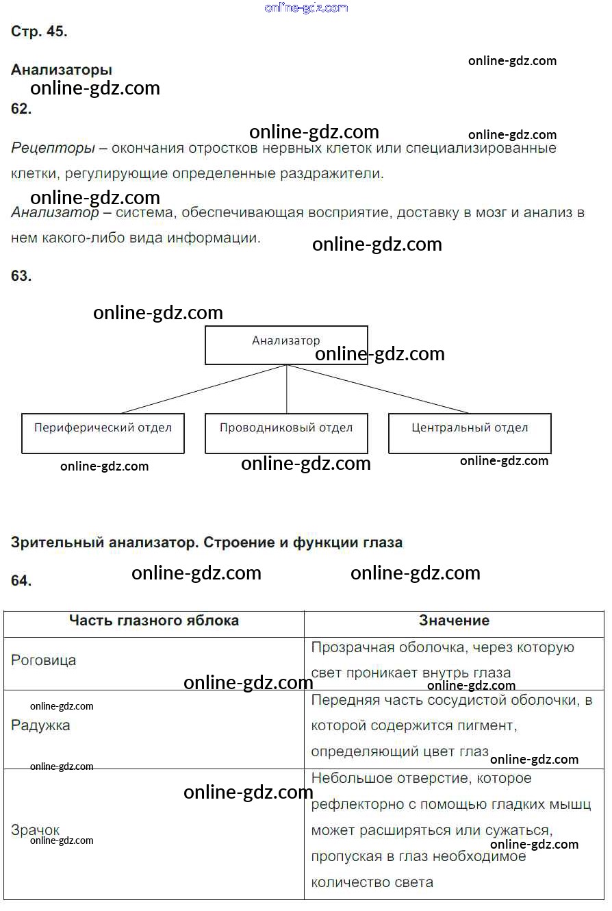 Готовые домашние задания по Биологии за 8 класс Рабочая тетрадь Сонин, Агафонова УМК 2017 - Страницы 45