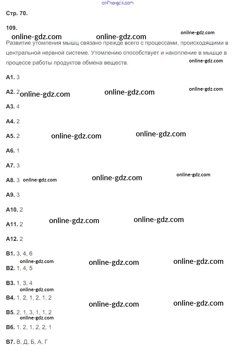 Готовые домашние задания по Биологии за 8 класс Рабочая тетрадь Сонин, Агафонова УМК 2017 - Страницы 70