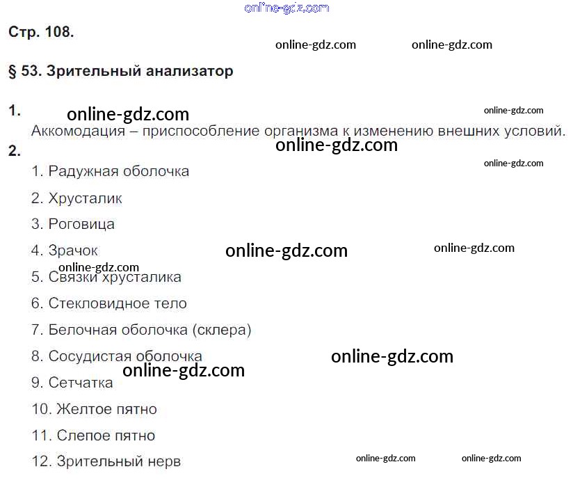 Готовые домашние задания по Биологии за 8 класс Рабочая тетрадь Жемчугова, Романова Инновационная школа 2017 - Страницы 108