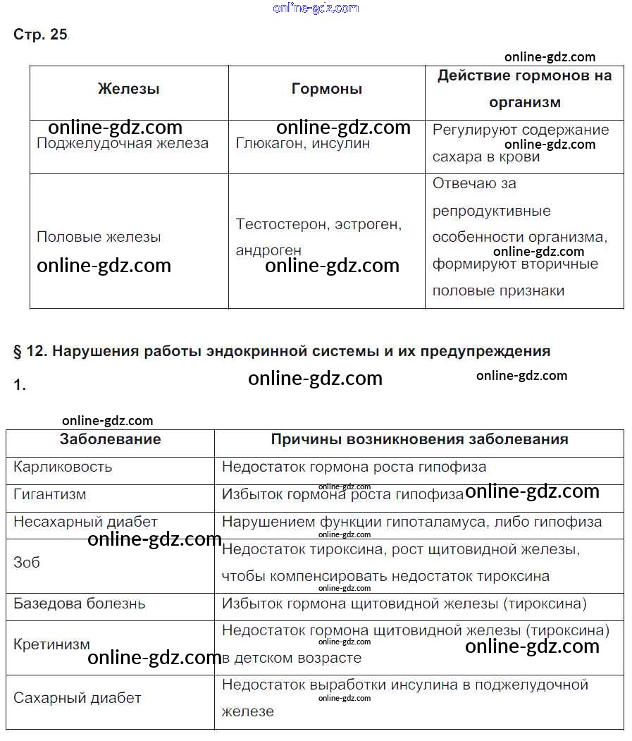 Готовые домашние задания по Биологии за 8 класс Рабочая тетрадь Жемчугова, Романова Инновационная школа 2017 - Страницы 25